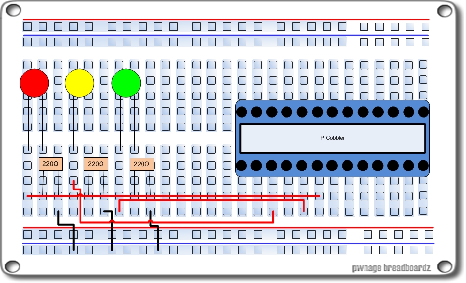 So i was a little restless one evening and decided to play with some LEDs (i had them sitting around along with the resistors for quite a while but have been preoccupied with the control of my PiBot) but of course just having some LEDs turn on or off when i say is a little boring so i made it a bit more interesting.